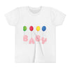Introducing the perfect addition to your child's wardrobe: this vibrant and playful Youth Short Sleeve Tee! Featuring colorful balloon graphics on the front, it brings a fun and cheerful vibe, ideal for parties or everyday wear. Crafted from extra lightweight, airlume-combed cotton, this tee ensures maximum comfort and softness for all-day play. It's perfect for birthdays, family gatherings, or casual outings. Young trendsetters will love its modern fit and versatile style, making it a great choice for any young fashionista. Celebrate life's moments with this delightful tee, making it an excellent gift for kids and a must-have for their wardrobe!